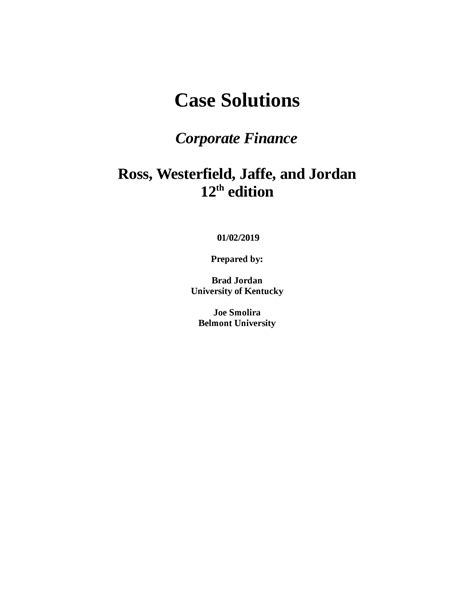 Free Reading CORPORATE FINANCE ROSS MINI CASE SOLUTIONS ebooks Free PDF